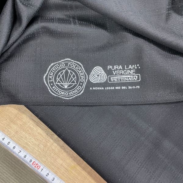 From our Tailors Cut selection. This cloth is a black with a interesting check feature that reveals itself as the cloth moves in the light. This is a beautiful piece and would be perfect for pants, skirts, jackets or a suit.