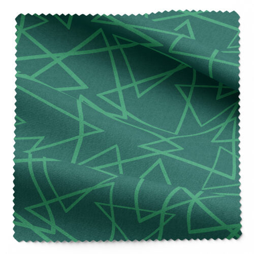 This beautiful design on 100% LENZING™ ECOVERO™ Viscose features a scatter of large triangles against a green background.