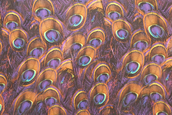 A great linen rayon blend woven in a chambray is printed in stunning peacock feathers. With 60% Linen and 40% Rayon, this fabric has a lovely drape and feel. The rayon also helps hard crushing while the linen retains the look and feel of linen